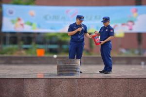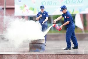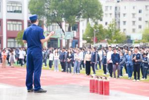 接着,来自梅陇消防救援站的同志们耐心地向师生讲解了灭火的基本技巧,包括“提、拔、瞄、压”四步操作法,即提起灭火器、拔掉保险销、瞄准火源根部、用力压下压把。随后他们模拟真实火灾场景,展示了专业的灭火技能,为全校师生上了一堂生动的安全教育课。
