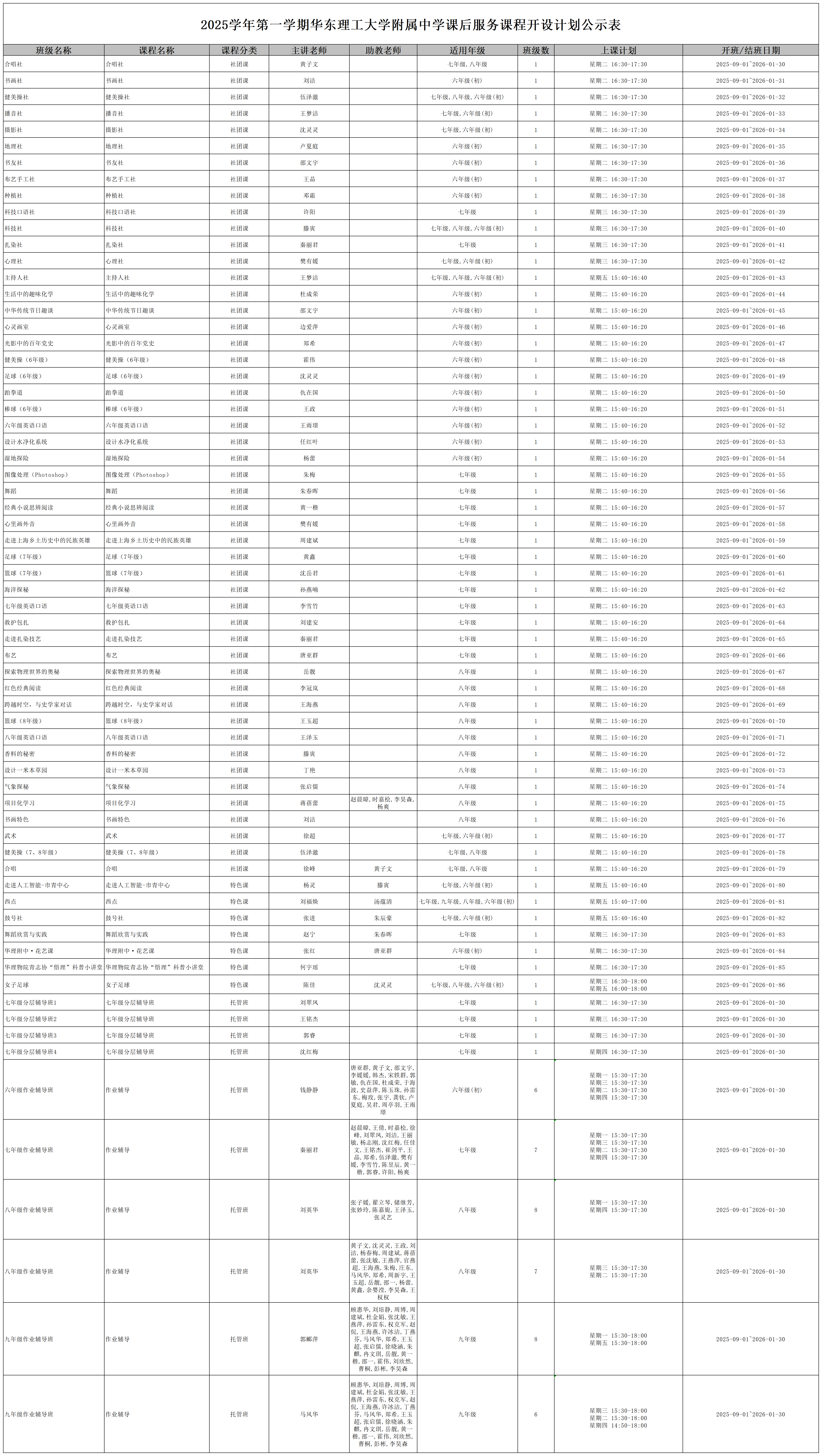 2025学年第一学期华理附中学校课后服务课程开设计划公示表