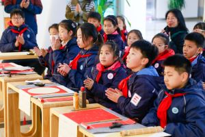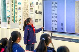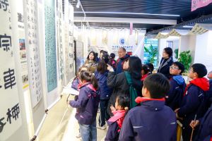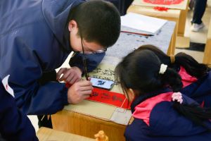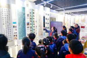 1月14日下午,书画展迎来了一群特殊的参观者,他们是启新小学书法班的20余名师生。在华理附中师生代表的带领下,启新小学师生进入展厅,仔细欣赏着一幅幅书画佳作,对作者的精湛技艺赞不绝口。参观期间,启新小学的王嘉轩同学与华理附中的王珈禾同学分别介绍了悬挂于展厅中的本人作品。学区秘书长包遵锋老师和书画活动负责老师一起与师生们交流了本次艺术活动的目的与内容,希望同学们平时刻苦练习书法,提高自己的书法水平,让中国传统艺术焕发更多魅力。